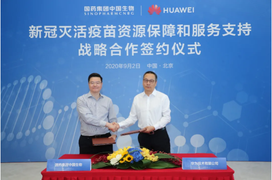 9月2日,國(guó)藥集團(tuán)中國(guó)生物與華為技術(shù)有限公司在京簽署新冠滅活疫苗資源保障和服務(wù)支持戰(zhàn)略合作協(xié)議,雙方將攜手抗擊新冠疫情、保障員工健康,同時(shí)在疾病預(yù)防、生物技術(shù)應(yīng)用創(chuàng)新等方面展開(kāi)跨界合作。