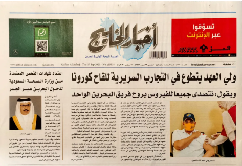 截至目前,巴林最高衛(wèi)生委員會(huì)主席穆罕默德親王、衛(wèi)生大臣法耶卡、王儲(chǔ)新聞?lì)檰?wèn)哈馬迪等一大批政府高級(jí)官員均作為志愿者參加了中國(guó)生物新冠滅活疫苗Ⅲ期臨床試驗(yàn)并接種疫苗。