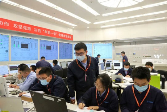 中核集團(tuán)三代核電技術(shù)“華龍一號(hào)”全球首堆主控室里的“核電黃金人”——操縱員們正在刻苦攻關(guān)。