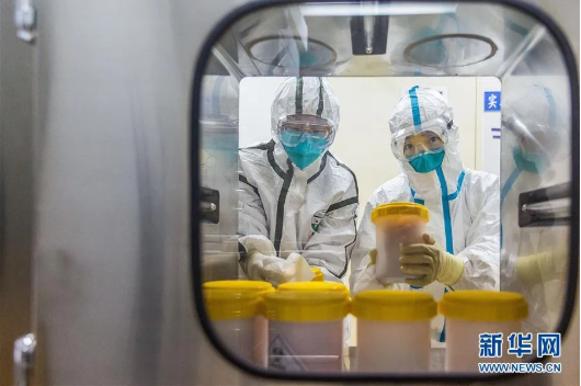 ▲ 2月25日,工作人員在中國(guó)疾病預(yù)防控制中心傳染病預(yù)防控制所P3實(shí)驗(yàn)室傳遞窗口接收剛剛從浙江省疾控中心運(yùn)抵的疫苗生產(chǎn)用新型冠狀病毒毒株。(來(lái)源:新華社)