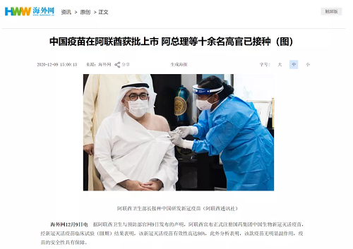 國(guó)藥新冠疫苗在阿聯(lián)酋獲批上市