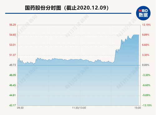 受此消息影響,9日,國(guó)藥集團(tuán)股價(jià)大漲,國(guó)藥股份(600511.SH)漲停,股價(jià)報(bào)54.7元,市值413億元。