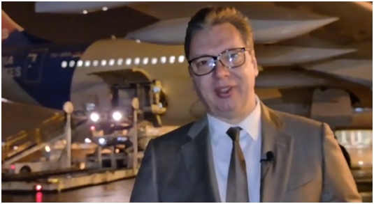 據(jù)塞爾維亞媒體報道,當?shù)貢r間3月5日,第三批中國國藥集團生產(chǎn)的新冠疫苗運抵塞爾維亞首都貝爾格萊德。塞爾維亞總統(tǒng)武契奇再次親赴機場迎接。視頻畫面顯示,當晚貝爾格萊德下著小雨。