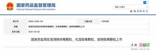 2021年3月2日,國家藥品監(jiān)督管理局發(fā)布工作動態(tài),批準化濕敗毒顆粒上市,是中藥注冊分類改革后首次按照《中藥注冊分類及申報資料要求》(2020年第68號)“3.2類 其他來源于古代經(jīng)典名方的中藥復方制劑”審評審批的品種之一。