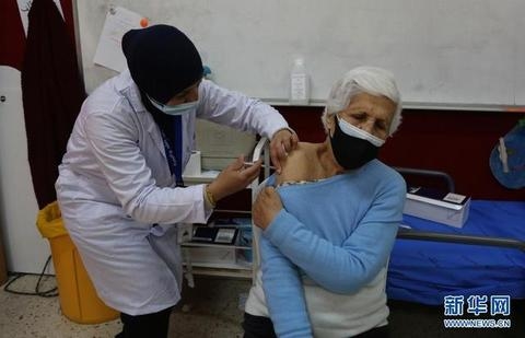 4月1日,約旦河西岸城市拉姆安拉的居民接種中國援助的國藥集團(tuán)新冠疫苗。(來源:新華網(wǎng))