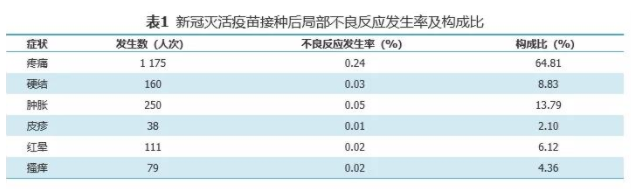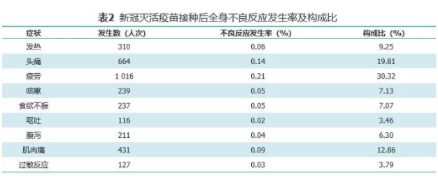 其局部不良反應(yīng)以接種部位疼痛、接種部位腫脹為主要表現(xiàn),發(fā)生率分別為0.24%、0.05%,全身不良反應(yīng)以疲勞、頭痛、發(fā)熱、咳嗽、食欲不振為主要表現(xiàn),未見嚴(yán)重不良反應(yīng)。