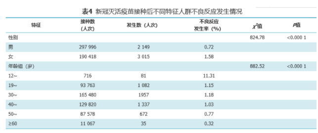 按年齡劃分,不良反應(yīng)發(fā)生率最低為≥60歲人群,不良反應(yīng)發(fā)生率為0.32%,其次是30至39歲人群,不良反應(yīng)發(fā)生率為1.18%,12至18周歲人群不良反應(yīng)發(fā)生率最高,為11.31%,以疲勞和接種部位疼痛為主。