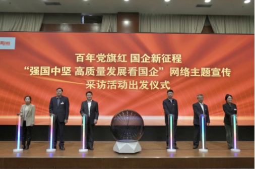▲“百年黨旗紅 國企新征程”暨“強(qiáng)國中堅 高質(zhì)量發(fā)展看國企”網(wǎng)絡(luò)主題宣傳活動出發(fā)儀式舉行