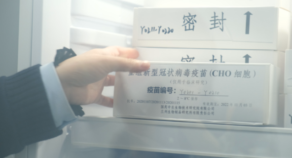 ▲從冷藏柜中取出臨床接種用中國(guó)生物重組新冠疫苗