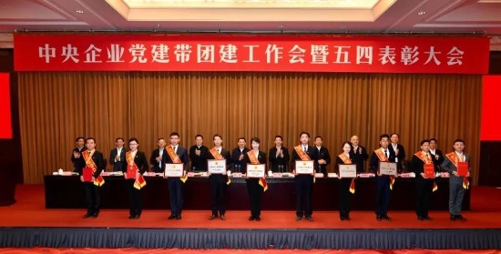 2021年4月30日,國資委中央企業(yè)黨建帶團(tuán)建工作會(huì)暨五四表彰大會(huì)召開,國藥集團(tuán)中國生物武漢生物制品研究所團(tuán)委書記鄒江龍(前排左四)代表所在集體領(lǐng)取中國青年五四獎(jiǎng)?wù)隆?/p>