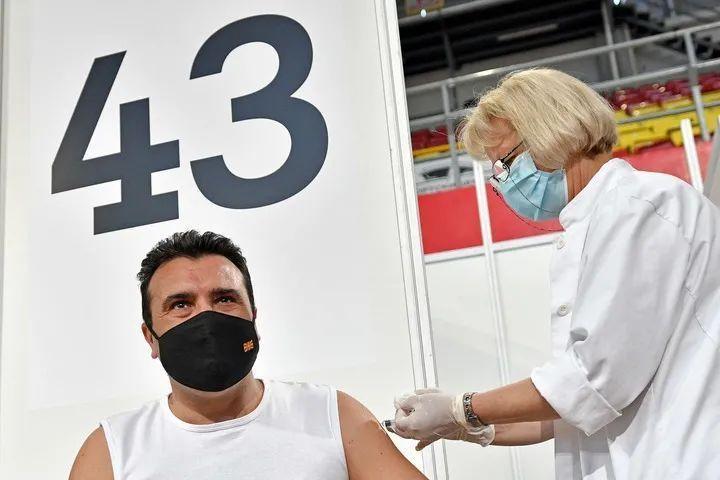 5月6日,北馬其頓總理扎埃夫在首都斯科普里接種中國(guó)國(guó)藥集團(tuán)新冠滅活疫苗。新華社發(fā)(托米斯拉夫·格奧爾基耶夫攝)