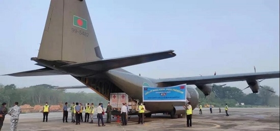 當(dāng)?shù)貢r間5月12日上午,中國援助孟加拉國的中國國藥集團(tuán)新冠疫苗搭乘孟加拉國空軍專機(jī)抵達(dá)孟加拉國首都達(dá)卡孟加拉之友空軍基地。