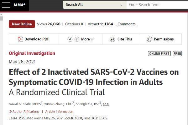 《美國醫(yī)學(xué)會雜志》刊發(fā)的國藥集團(tuán)新冠疫苗Ⅲ期臨床試驗(yàn)中期分析結(jié)果的論文截圖