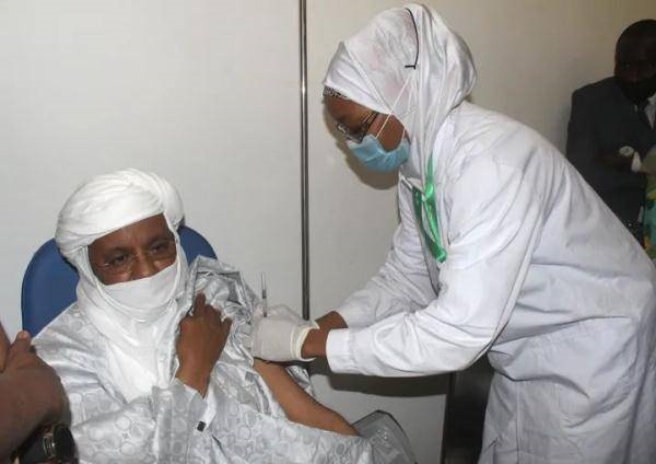 3月29日,尼日爾總理拉菲尼(左)在尼亞美接種首劑中國新冠疫苗。新華社發(fā)