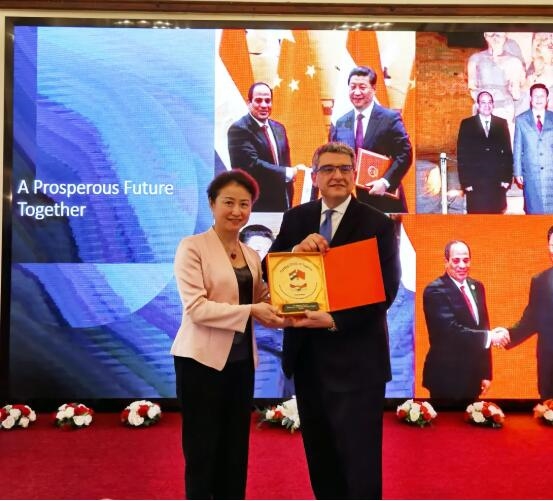 5月31日,國藥集團(tuán)副總經(jīng)理石晟怡在中國埃及建交65周年慶?;顒?dòng)上代表國藥集團(tuán)接受埃及駐華大使巴德里頒發(fā)的共同抗疫紀(jì)念牌。