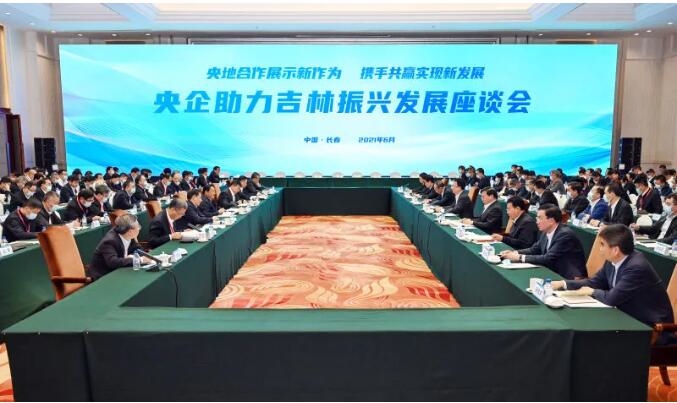 2021年6月4日,集團劉敬楨董事長在長春參加央企助力吉林振興發(fā)展座談會。國務院國資委黨委書記、主任郝鵬,吉林省委書記景俊海,省委副書記、省長韓俊出席,副省長李偉主持,國務院國資委副主任任洪斌、秘書長彭華崗,省領導吳靖平、胡家福、田錦塵、張志軍,省政府秘書長安桂武參會。