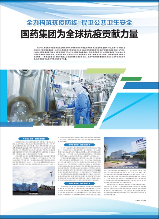 5月7日,國(guó)藥集團(tuán)中國(guó)生物北京生物制品研究所研制的新冠病毒疫苗獲得世界衛(wèi)生組織緊急使用認(rèn)證,是第一個(gè)獲世衛(wèi)組織批準(zhǔn)的中國(guó)新冠病毒疫苗。6月1日,國(guó)藥集團(tuán)中國(guó)生物北京生物制品研究所首批供應(yīng)世衛(wèi)組織“新冠肺炎疫苗實(shí)施計(jì)劃”(COVAX)的新冠病毒疫苗下線,這也是首批供應(yīng)COVAX的中國(guó)新冠病毒疫苗。目前,國(guó)藥集團(tuán)生產(chǎn)的新冠病毒疫苗已在全球80余個(gè)國(guó)家和國(guó)際組織獲批注冊(cè)上市或緊急使用,已供應(yīng)130多個(gè)國(guó)家和地區(qū),接種人群覆蓋196個(gè)國(guó)別。國(guó)藥集團(tuán)中國(guó)生物是目前全球唯一一家獨(dú)立自主在2條技術(shù)路線上研發(fā)出3款新冠疫苗的企業(yè)。這是中國(guó)新冠病毒疫苗作為全球公共產(chǎn)品的生動(dòng)實(shí)踐,為實(shí)現(xiàn)疫苗可及性和可負(fù)擔(dān)性貢獻(xiàn)了力量。