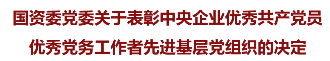 6月28日,國(guó)務(wù)院國(guó)資委官網(wǎng)發(fā)布《國(guó)資委黨委關(guān)于表彰中央企業(yè)優(yōu)秀共產(chǎn)黨員優(yōu)秀黨務(wù)工作者先進(jìn)基層黨組織的決定》。