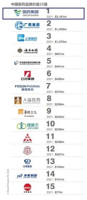 7月,國際著名品牌價值評估機(jī)構(gòu)英國Brand Finance公司發(fā)布《2021中國醫(yī)藥品牌價值和品牌強(qiáng)度評估報告》,首次對15個最具價值和最強(qiáng)的中國醫(yī)藥品牌進(jìn)行了分析和排名,國藥集團(tuán)位列中國醫(yī)藥品牌首位,品牌價值高達(dá)32億美元。這也是繼此前榮獲Brand Fiance全球最具價值醫(yī)藥品牌TOP25中第11位、亞洲醫(yī)藥企業(yè)品牌價值第一后,國藥集團(tuán)再一次登上該權(quán)威機(jī)構(gòu)榜單,充分展示了國藥強(qiáng)勁的品牌價值和綜合實力。