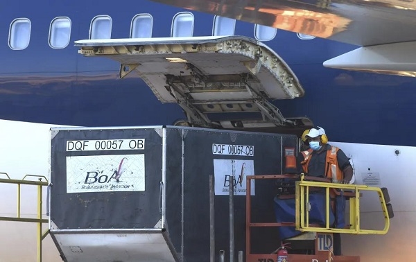 2月24日,工作人員在玻利維亞圣克魯斯的機(jī)場卸載中國新冠疫苗。新華社發(fā)(羅德里戈·烏拉加斯蒂攝)