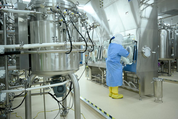 工作人員在全球最大新冠疫苗生產(chǎn)基地中操作