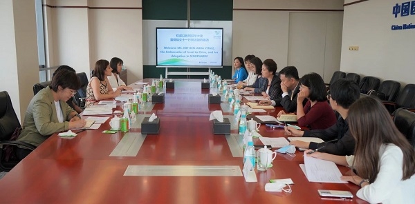 石晟怡副總經(jīng)理歡迎潘綺瑞大使一行到訪國(guó)藥集團(tuán),重點(diǎn)介紹了國(guó)藥集團(tuán)新冠疫苗目前開(kāi)展國(guó)際合作的情況,簡(jiǎn)要回顧了過(guò)去五年中與以色列在醫(yī)療器械和生物制藥方面的深入交流和實(shí)質(zhì)合作。潘綺瑞大使對(duì)與國(guó)藥集團(tuán)一直以來(lái)的良好合作表示贊賞,她希望與國(guó)藥集團(tuán)加深合作,充分發(fā)揮以色列駐華使館的平臺(tái)優(yōu)勢(shì),為國(guó)藥集團(tuán)開(kāi)拓與更多以色列企業(yè)合作機(jī)會(huì)。未來(lái),雙方將圍繞以色列的創(chuàng)新技術(shù)和產(chǎn)品在醫(yī)療器械、生物制藥、治療技術(shù)等領(lǐng)域深入交流,在以往成功合作基礎(chǔ)上繼續(xù)深化和不斷擴(kuò)大相關(guān)合作,進(jìn)一步推動(dòng)中以關(guān)系向前發(fā)展。