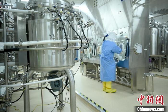 工作人員在新冠疫苗生產(chǎn)基地中操作?!幖瘓F(tuán)供圖