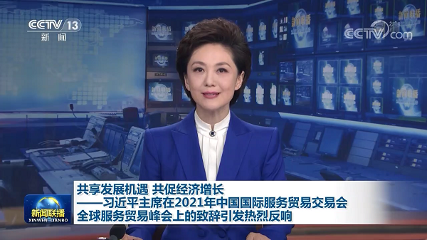 2021年9月4日央視新聞聯(lián)播報道:習(xí)近平主席在2021年中國國際服務(wù)貿(mào)易交易會全球服務(wù)貿(mào)易峰會上的致辭引發(fā)熱烈反響。與會嘉賓表示,致辭充分彰顯了中國堅持開放合作、互利共贏,共享服務(wù)貿(mào)易發(fā)展機遇,共促世界經(jīng)濟復(fù)蘇和增長的信心和決心,令人倍受鼓舞、倍感振奮。