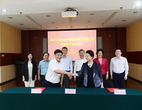 2021年9月8日,國藥集團董事長、黨委書記劉敬楨率隊拜訪科技日報社,與科技部黨組成員、科技日報社社長李平會談。