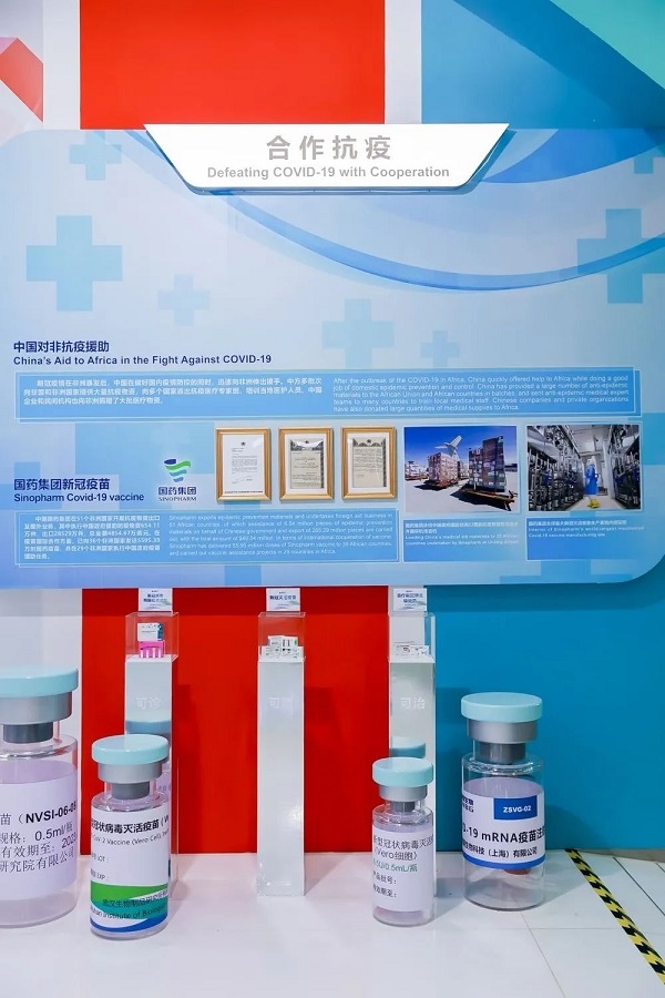 本次博覽會的中非抗疫成果展上,中國國藥集團(tuán)帶來了中國參與“新冠疫苗實(shí)施計(jì)劃”的疫苗展品。國藥集團(tuán)黨委副書記楊柳表示,在對非疫苗合作上,截至今年9月中旬,國藥集團(tuán)已向36個非洲國家和組織發(fā)約6000萬劑的疫苗,在29個國家和組織執(zhí)行中國政府疫苗援助任務(wù),獲得當(dāng)?shù)卣腿嗣竦母叨荣澴u(yù)。