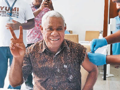 圖為7月13日,在巴布亞新幾內(nèi)亞首都莫爾茲比港,一名男子接種中國(guó)疫苗。