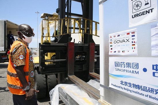 9月18日,工作人員在科特迪瓦阿比讓國際機場轉運中國國藥集團供應的新冠疫苗。(新華社發(fā) 伊萬·宋 攝)