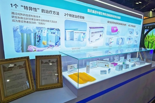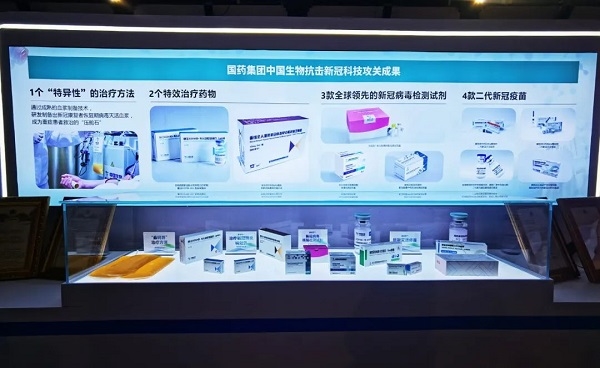 科技部“社會(huì)發(fā)展”展區(qū)以“社會(huì)發(fā)展科技創(chuàng)新 助力人民美好生活”為主題,在其科技抗疫展區(qū)內(nèi),國藥集團(tuán)中國生物展出了包括1個(gè)“特異性”治療方法、2個(gè)治療藥物、3款檢測(cè)試劑、4款二代新冠疫苗等最新科技抗疫研發(fā)成果。