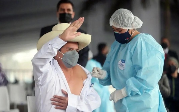 8月6日,秘魯總統(tǒng)卡斯蒂略在首都利馬接種國藥集團中國生物新冠疫苗。