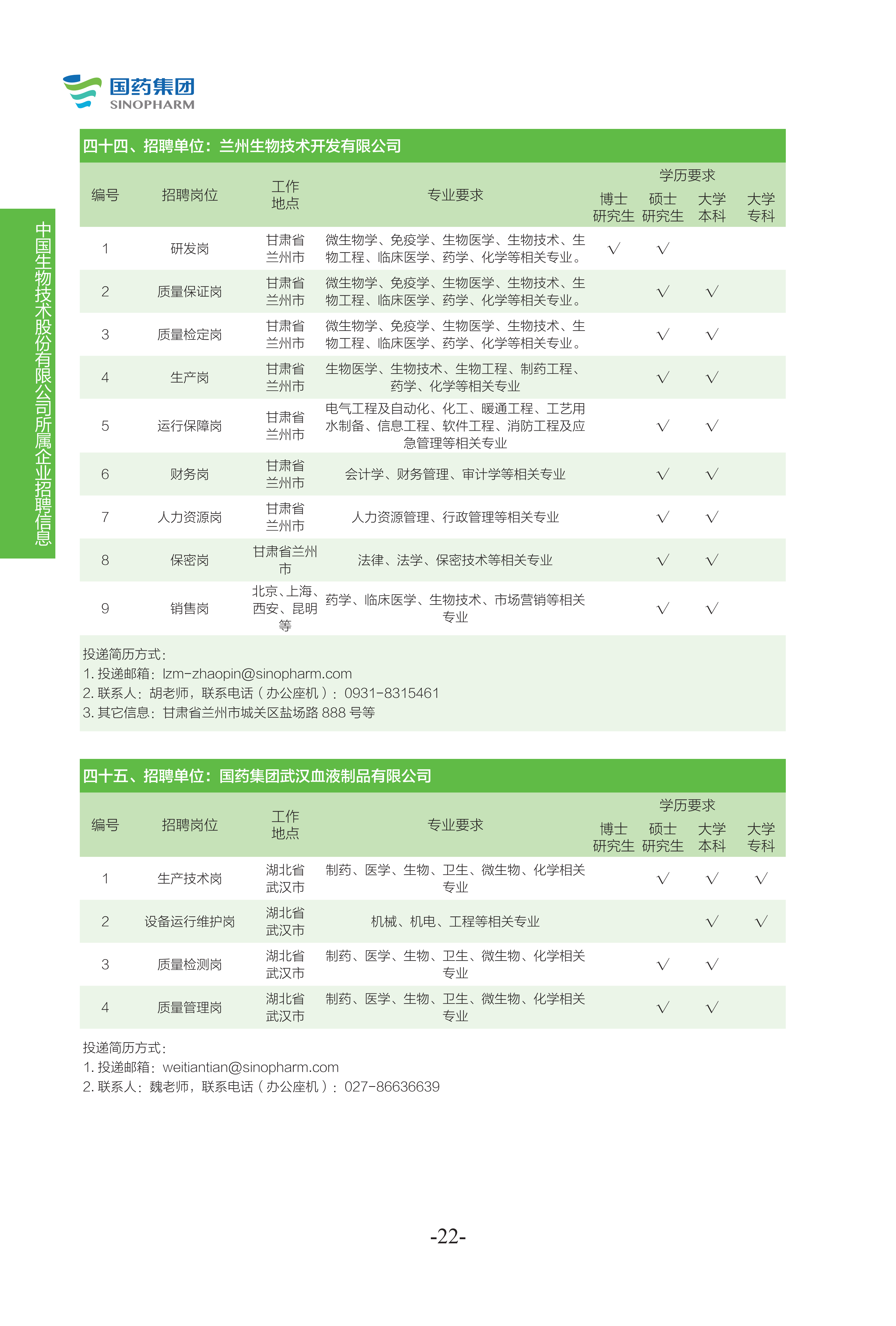 國藥集團(tuán)2022年度校園招聘