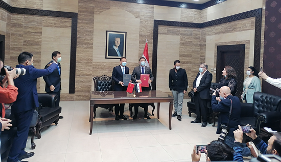 當(dāng)?shù)貢r間11月14日,中國政府援助敘利亞的50萬劑國藥新冠疫苗交接儀式在敘利亞衛(wèi)生部舉行,敘衛(wèi)生部長加巴什和中國駐敘大使馮彪共同出席儀式。