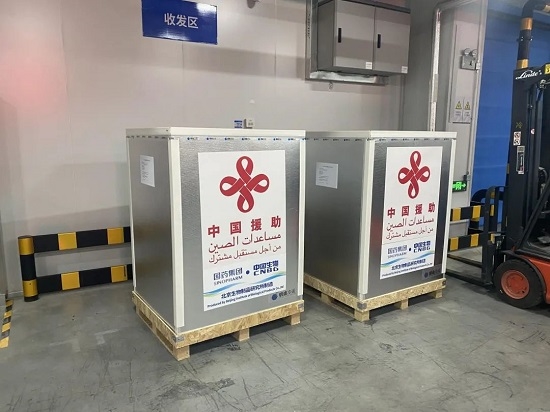 這是國藥集團所屬國藥國際繼順利執(zhí)行4月24日第一批政府援?dāng)幮鹿谝呙缛蝿?wù)后,再一次克服當(dāng)?shù)鼐謩輨邮?、運輸困難等不利因素,成功發(fā)運的第二批援?dāng)幰呙?。用實際行動落實11月5日兩國元首歷史性通話精神,為尚不穩(wěn)定的敘方送去戰(zhàn)疫利器,持續(xù)支持敘方抗擊新冠疫情。