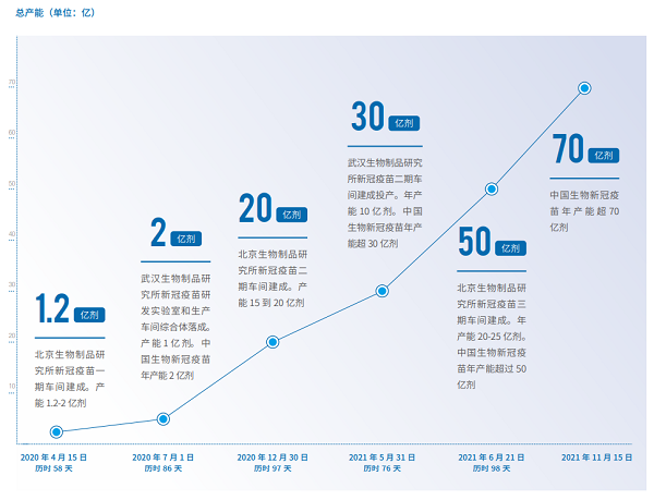 為了實(shí)踐中國對(duì)世界的承諾,保障疫苗大規(guī)模持續(xù)穩(wěn)定供應(yīng),中國生物爭分奪秒加快科技成果轉(zhuǎn)化和生產(chǎn)供應(yīng)保障。目前,國藥集團(tuán)中國生物已在國內(nèi)建成了6個(gè)P3高等級(jí)生物安全生產(chǎn)車間,同期完成了蘭州生物所、成都生物所、上海生物所新冠疫苗分包裝生產(chǎn)線改擴(kuò)建,新冠滅活疫苗國內(nèi)整體年產(chǎn)能已超過70億劑次,極大緩解了國內(nèi)外新冠疫苗供應(yīng)緊張局面。
