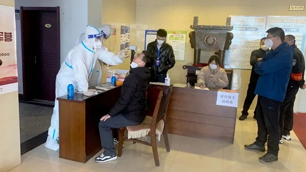 3月12日,國藥集團中國生物長春生物制品研究所派出8人組成的志愿者團隊,到長春市九臺區(qū)東湖鎮(zhèn)街道支援核酸檢測。團隊運用長春生物制品研究所研制推出的快速新冠核酸檢測試劑盒對重點人員進行了釆樣測試,并積極開展入村入戶檢測排查,助力當(dāng)?shù)匾咔榉揽亍?/p>