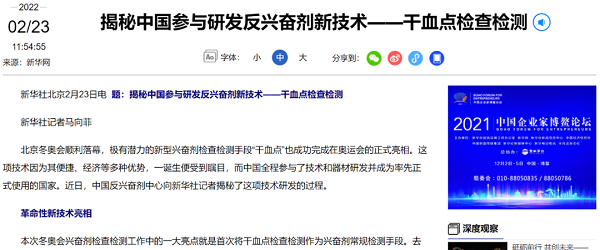 3月25日,北京2022年冬奧會和冬殘奧會組織委員會向國藥集團中國醫(yī)療器械有限公司發(fā)來感謝信,指出,北京冬奧會期間,反興奮劑工作團隊用嚴謹高效的工作,成功實現(xiàn)了舉辦一屆“像冰雪一樣純潔無暇的奧運盛會”的承諾。本屆冬奧會興奮劑檢查檢測工作中的一大亮點就是首次將干血點檢查檢測作為興奮劑檢查檢測的常規(guī)手段,由中國自主研發(fā)和制造的干血點器材“貝殼芯片”在冬奧會成功亮相,北京冬奧會成為首個開展干血點常規(guī)檢查檢測的奧運會,這一成就的取得離不開國藥器械對樣本采集器材的研究和開發(fā)所作出的卓越貢獻。同時指出,國藥器械本著高度的責任感和使命感,積極推進干血點樣本采集器材研發(fā)工作,順利完成了對器材生產(chǎn)和組裝工作,確保了干血點器材按時按質(zhì)按量交付。干血點項目在冬奧會期間成功實施,得到了來自相關(guān)國際組織官員、運動員和反興奮劑工作人員的認可和積極反饋。干血點項目的成功實施將在奧運會以及世界反興奮劑工作歷史上留下濃墨重彩的一筆。