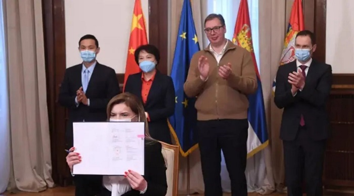 2021年1月16日,塞爾維亞迎來首批國藥集團(tuán)中國生物疫苗,塞爾維亞藥品和醫(yī)療器械局在科學(xué)審評后,確認(rèn)國藥集團(tuán)新冠疫苗的質(zhì)量、有效性與安全性,于18日批準(zhǔn)在該國使用該款疫苗,成為首個(gè)使用中國疫苗的歐洲國家。3月18日,塞爾維亞總統(tǒng)武契奇與中國駐塞爾維亞大使陳波在貝爾格萊德見證塞方與國藥集團(tuán)簽署新冠疫苗采購協(xié)議。4月6日,塞爾維亞總統(tǒng)武契奇接種國藥集團(tuán)新冠疫苗。