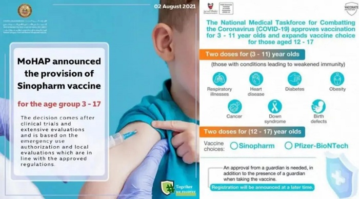 2021年8月2日,阿聯(lián)酋批準(zhǔn)國藥集團(tuán)中國生物生產(chǎn)的新冠疫苗用于本國3-17歲兒童接種。