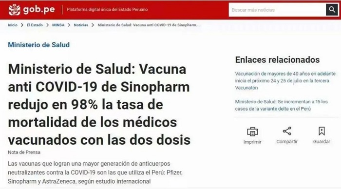 6、秘魯:衛(wèi)生部報(bào)告表明國藥新冠疫苗可大幅降低死亡率