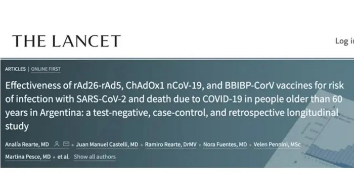 當(dāng)?shù)貢r(shí)間2022年3月15日,阿根廷國家流行病學(xué)和國家戰(zhàn)略信息局局長Analía Rearte在國際權(quán)威醫(yī)學(xué)期刊《柳葉刀》(《The Lancet》)發(fā)表新冠疫苗真實(shí)世界研究文章,揭示了三款疫苗的效果,其中包括國藥集團(tuán)中國生物新冠滅活疫苗(BBIBP-CorV)。研究顯示,對于60歲及以上的老年人,接種兩劑國藥中國生物新冠滅活疫苗后,對減少死亡風(fēng)險(xiǎn)的有效率為85%。論文題為《Effectiveness of rAd26-rAd5, ChAdOx1 nCoV-19, and BBIBP-CorV vaccines for risk of infection with SARS-CoV-2 and death due to COVID-19 in people older than 60 years in Argentina: a test-negative, case-control, and retrospective longitudinal study》。