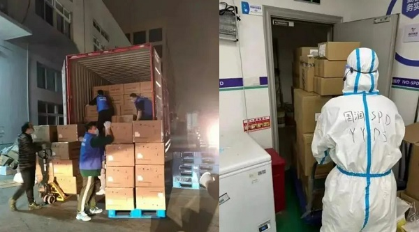 3月24日,國藥控股接受上海市政府委托,24小時內(nèi),將5萬余件醫(yī)用防護及外科口罩以及300件防護服送達指定地點。
