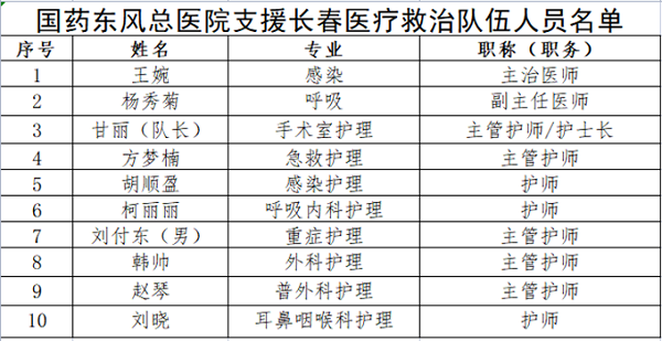 4月6日,國(guó)藥東風(fēng)總醫(yī)院又集結(jié)了一支精干隊(duì)伍,與全市其他醫(yī)療骨干組成十堰支援長(zhǎng)春醫(yī)療隊(duì),趕赴長(zhǎng)春市人民醫(yī)院進(jìn)行疫情相關(guān)醫(yī)療救治工作。