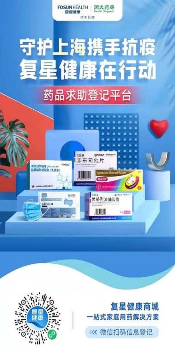 4月6日,復(fù)星健康攜手國大藥房上線“藥品求助登記平臺(tái)”,在嚴(yán)格遵守各地防疫措施的前提下,協(xié)調(diào)、安排推進(jìn)履約服務(wù),努力緩解上海居民居家配藥壓力,提供藥品供應(yīng)和用藥服務(wù)。