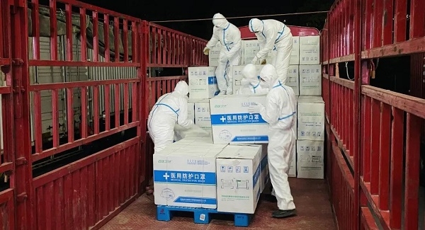在搬運(yùn)物資現(xiàn)場,新加入的志愿者們用最快的速度換上專業(yè)防護(hù)服,投入到緊張的戰(zhàn)斗中。大家相互配合,團(tuán)結(jié)協(xié)作,將一箱箱防疫物資有序搬運(yùn)到指定位置。經(jīng)過4個多小時的連續(xù)奮戰(zhàn),志愿者們早已渾身濕透,雙手也已露出深深的勒痕,但是大家沒有絲毫抱怨和懈怠,只想第一時間把物資運(yùn)送到最需要的地方,用實(shí)際行動為抗擊疫情貢獻(xiàn)力量。