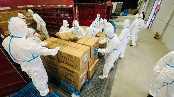 最終,在志愿者們的共同努力下,先后共完成了1100萬盒抗原檢測試劑盒和100萬只醫(yī)用口罩的卸車入庫任務(wù)。據(jù)悉,這批物資隨后將火速發(fā)往抗疫一線,為上??箵粢咔樨暙I(xiàn)國資央企力量!