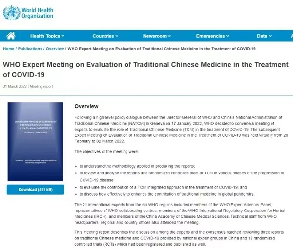 (世界衛(wèi)生組織發(fā)布肯定中醫(yī)藥治療新冠安全有效的報(bào)告)